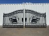 Set of 2 Large Unused Wrought Iron Style Gates with Cow Scene, Each gate is 8ft wide, Height at High Side: 2.3m, Height at Low Side: 1.8m, Made from Galvanised Steel, Total Approximate Combined Weight of both gates: 135kg EXEQ Stock No S04751
