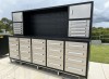 Unused 40 Drawer Work Bench Cabinet, new 3 part sliding drawer system, lockable drawers - various sizes, rubber matting inside drawers, comes with Castor Wheels, hanging hooks, side handles, Approximate Shipping Dimensions: 2850mm L x 700mm W x 2030mm H,